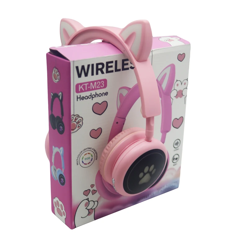 هدفون بیسیم بچه گانه گربه ای با رقص نور مدل KT-M23