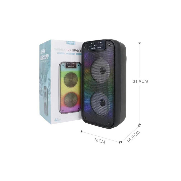اسپیکر GTS-1873 یک مدل بلوتوثی و قابل حمل است که با دو باند 4 اینچی طراحی شده و به خاطر صدای قدرتمند و کیفیت بالا شناخته میشود. این اسپیکر برای استفاده در مهمانیها و محیطهای باز بسیار مناسب است. دو باند 4 اینچ: این اسپیکر دارای دو باند با اندازه 4 اینچ است که صدای واضح و باس قوی را فراهم میکنند. این باندها قدرت خروجی مناسبی برای پخش موسیقی با کیفیت بالا ارائه میدهند. نورپردازی جذاب: یکی از ویژگیهای متمایز این اسپیکر، نورپردازی LED جذاب آن است که با پخش موسیقی تغییر میکند و تجربهای بصری و هیجانانگیز برای کاربران به همراه دارد. این نورها در رنگها و افکتهای مختلف طراحی شدهاند که به محیط جلوه خاصی میبخشند. پخش بلوتوث: امکان اتصال به دستگاههای مختلف مانند گوشی موبایل، تبلت و لپتاپ از طریق بلوتوث فراهم است، که باعث راحتی در استفاده میشود. پورت USB و کارت حافظه: اسپیکر GTS-1873 از پورت USB و شیار کارت حافظه پشتیبانی میکند، که به کاربران اجازه میدهد موسیقیهای ذخیرهشده روی این دستگاهها را پخش کنند. رادیو FM: این مدل همچنین دارای قابلیت رادیو FM است که میتوان ایستگاههای رادیویی محلی را دریافت و پخش کرد.